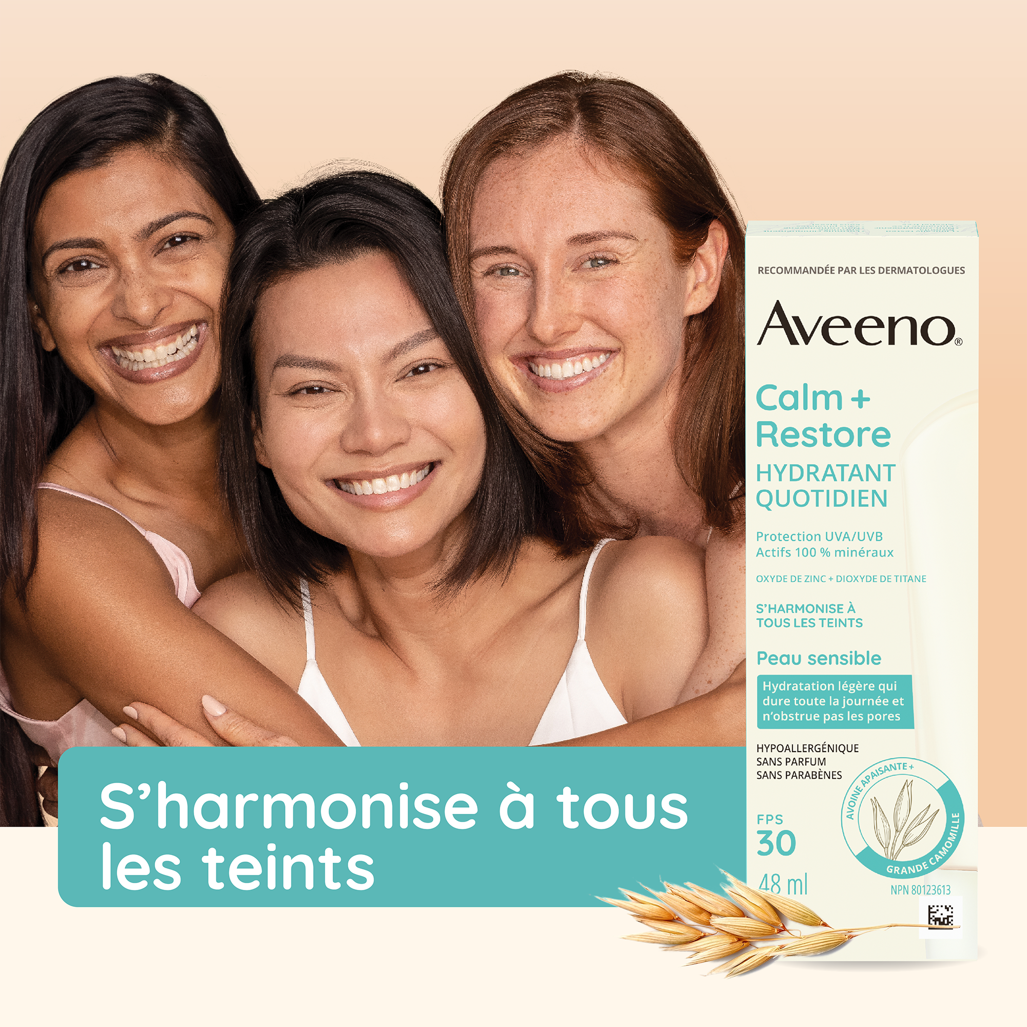 Le complexe triple avoine apaise et nourrit la peau sèche.