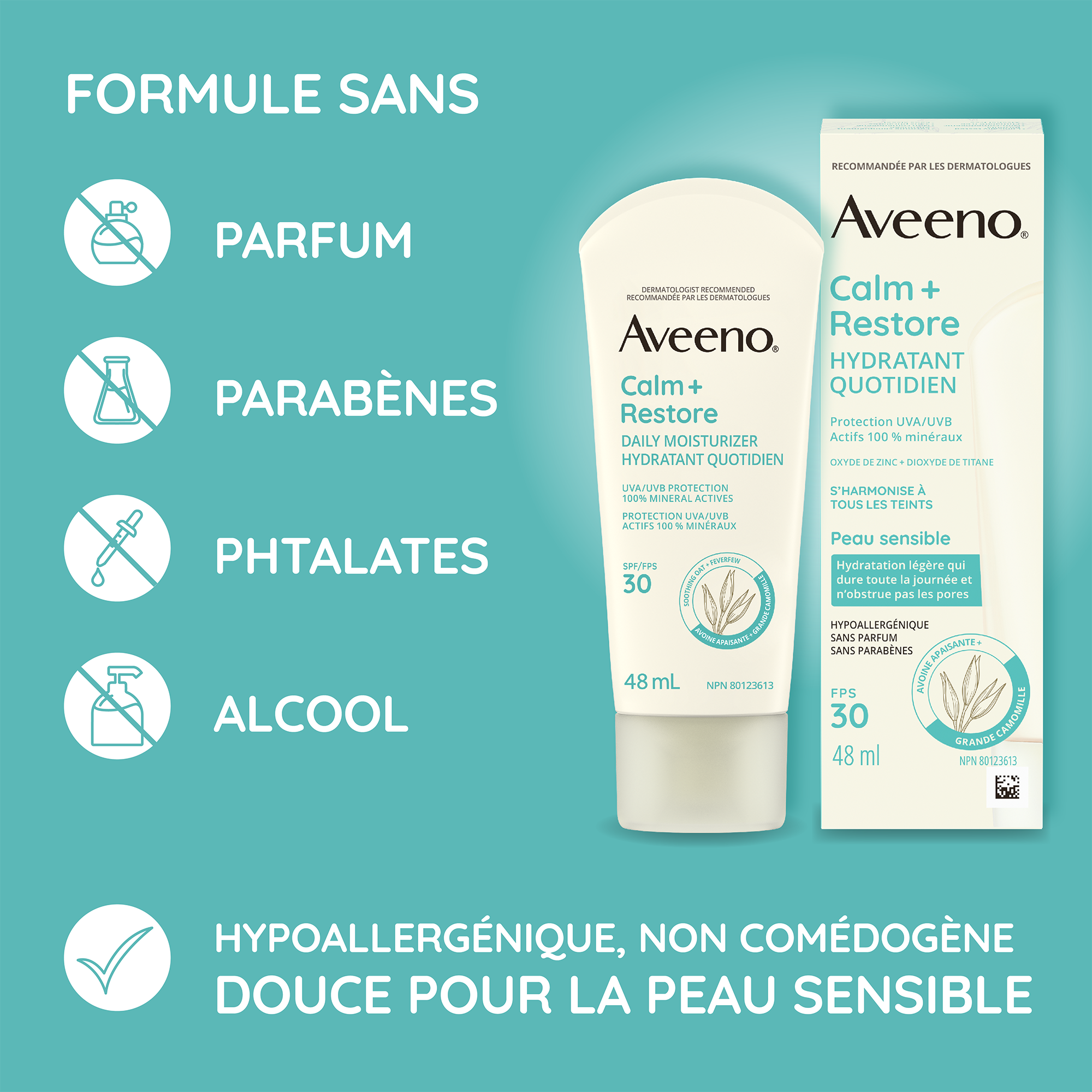 Offert par Aveeno®, une marque recommandée par les dermatologues depuis plus de 70 ans, cet hydratant quotidien pour le visage, avec écran solaire minéral FPS 30, rend la peau plus douce et plus lisse au toucher, tout en prévenant les signes de vieillissement prématuré causés par le soleil.
